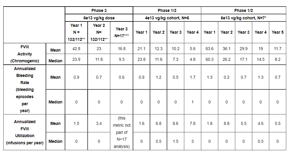 此次批准基于包括GENEr8-1研究2年随访数据在内的大量实质性证据。GENEr8-1是一项单臂、多中心、开放标签的研究,也是迄今为止血友病领域规模最大的基因疗法III期研究,旨在评估Valoctocogene roxaparvovec在既往接受过FVIII预防性治疗的重度A型血友病患者中的有效性和安全性。该研究共纳入了134例患者,主要终点是治疗后49-52周期间中位FVIII活性水平相较于基线的变化,次要终点为外源性FVIII替代疗法的年平均使用率以及年化出血率。